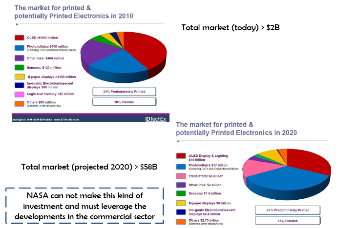 • There are opportunities for hybrid systems, depending on which characteristics of a printed system are to be optimized for the application (flexibility, printability, cost, mass).