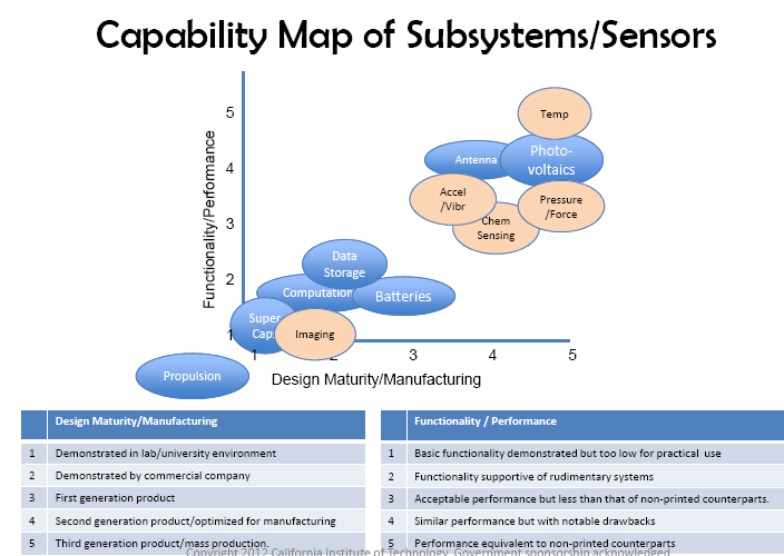 1. Explore the viability of printed technologies for creating small 2D spacecraft, including mission concepts, architectures, materials, subsystems, integration and manufacturing aspects.