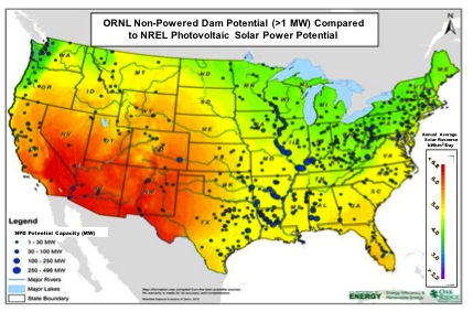 ORNL found that hydropower energy is available in areas that are not rich in solar power, such as the Ohio River Valley and the Southeast.