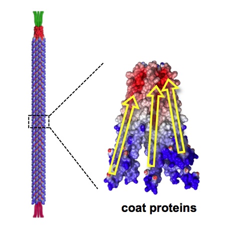The M13 bacteriophage has a length of 880 nanometers and a diameter of 6.6 nanometers. It’s coated with approximately 2700 charged proteins that enable scientists to use the virus as a piezoelectric nanofiber.