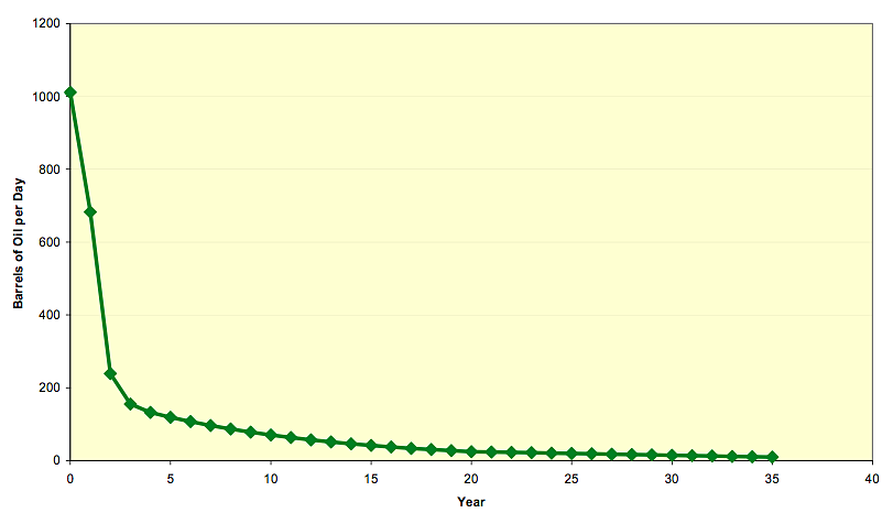Typical North Dakota Bakken oil well production profile.