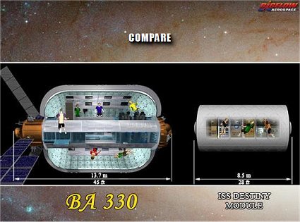 Nextbigfuture noted that the BA330 would be able to launched no the Spacex Falcon Heavy. The Falcon Heavy could almost launch a 2100 cubic meter Bigelow inflatable space station.