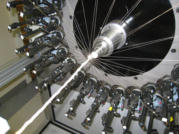 Biological braids: A machine braids together 48 threads of human extracellular material.