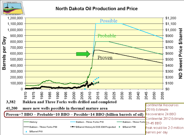 The above state forecast is conservative. Continental Resources believes that recoverable oil could be triple the high end of estimate in the chart of 14 billion to 27-45 billion barrels