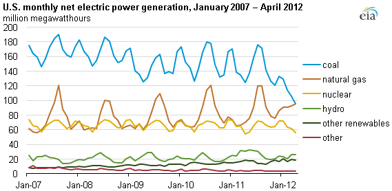 There has been a shift about 10% of US energy generation from coal to natural gas