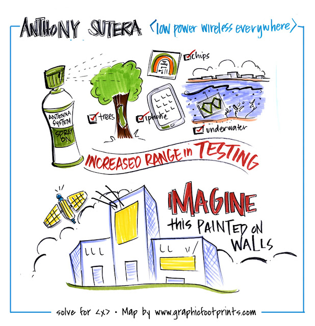 Using nanoparticles for a spray on antenna that is an order of magnitude better than regular military antennas. They sprayed it on a tree and military testing showed that they antenna sprayed on a tree was better.