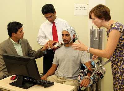 A multidisciplinary team hopes to develop and validate a noninvasive brain-machine interface (BMI) to a robotic orthotic device that is expected to innovate upper-limb rehabilitation. The new neurotechnology will interpret brain waves that let a stroke patient willingly operate an exoskeleton that wraps around the arm from the fingertips to the elbow.