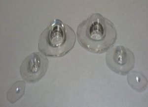 Polymer Lenses – These light-gathering polymer lenses are 3.5 times more powerful than glass, and are the first commercial nanolayered product to come out of many years of R&D at Case Western Reserve University. To create the lenses, a 4,000-layer film is coextruded, and then 200 layers of film are stacked to create an 800,000-nanolayer sheet. Photo courtesy Michael Pont