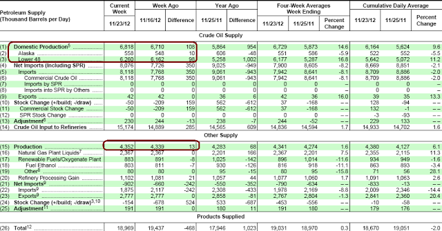 This seems to indicate that oil from North Dakota (Bakken) and Texas (Eagle Ford) has likely increased by 200,000 to 300,000 barrels per day since the September, 2012 state level oil reports.