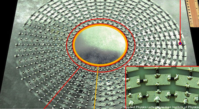 Scientists at Southeast University in Nanjing have developed a “nearly perfect” cloaking device for hiding DC current, a building block toward optical invisibility. The DC cloak is also ultrathin — only 1 cm thick, which is the absolute limit for thinness of this type of practical demonstration. It is a network of resistors, common parts of electrical circuits that are used to reduce voltage, which act in this case as a type of metamaterial, an artificial material that exhibits properties such as bending current or electromagnetic waves, including visible light.