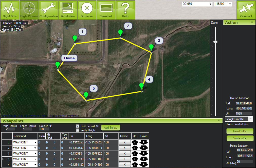 * Unlimited GPS waypoints. Just point and click waypoints in the Mission Planner, and ArduCopter will fly itself to them. No distance limits! You can script entire missions, including camera control!