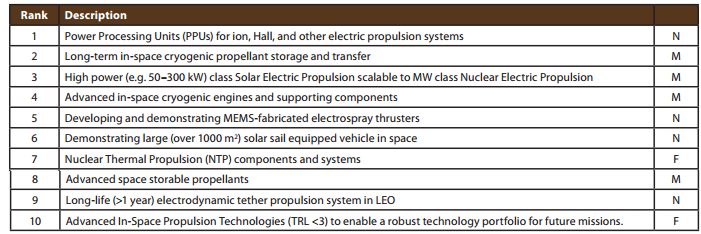 Electric sail propulsion was in the advanced propulsion section of the NASA report.