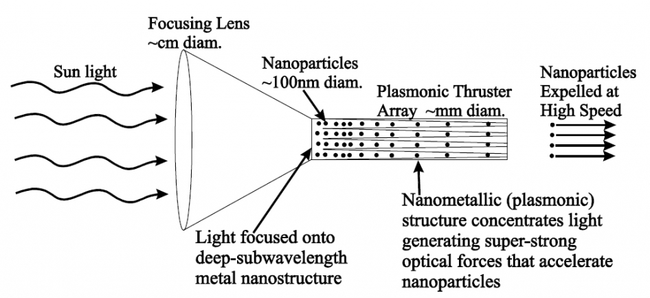 Within the context of these types of missions, we propose to assess the ability of plasmonic force propulsion to advance the state-of-the-art. We propose to numerically simulate plasmonic force fields with asymmetric/gradient geometry and relevant solar light constraints, predict nanoparticle velocity, mass flow rate, and resulting propulsion performance (thrust, specific impulse), and evaluate spacecraft position control resolution and pointing precision enabled by plasmonic propulsion. We will compare our results with state-of-the-art thrusters (e.g., colloid/electrospray electric propulsion) and torquers (e.g., reaction wheels). We will also assess the feasibility of plasmonic propulsion to meet and/or exceed the stringent demands of future NASA missions.