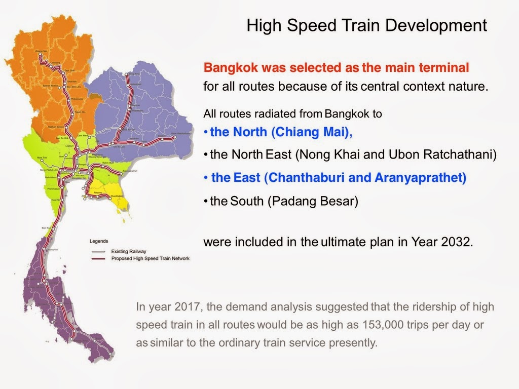 The first phase of Thailand’s high-speed train system includes total investment of 400 billion baht ($12.8 billion). China, Japan, South Korea and France expressed interest in bidding for contracts to build the network. The Thailand high speed rail system will have a budget of about $75 billion.