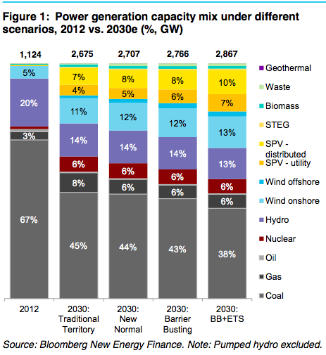 The Future of China’s Power Sector: From centralised and coal powered to distributed and renewable?, Bloomberg New Energy Finance. Projects about 170 GWe of nuclear power. This would be about 1350 TWh since 100 GWe generate 800 TWh in the USA.