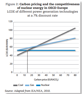 China has some carbon exchanges now. They trade carbon permits in seven trial markets. The price is about $7 to 10 per ton of CO2. China will likely add seven pilot carbon pricing systems by 2015. China is expected to add a carbon tax by 2020 and national emissions trading by 2020. These moves will increase the financial incentives for nuclear energy, hydro power, solar and wind power in China.
