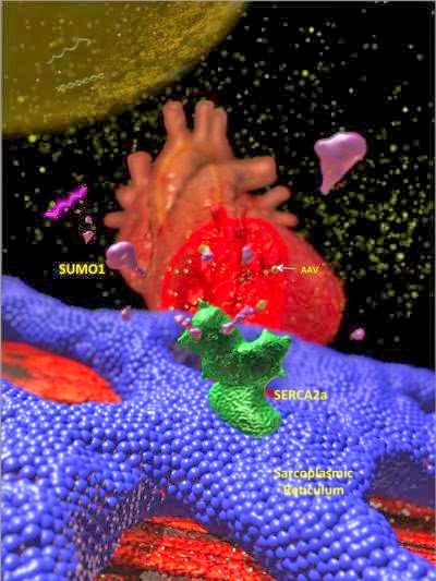 In large animal models of heart failure, the researchers found that gene therapy delivery of high dose SUMO-1 alone, as well as SUMO-1 and SERCA2 together, result in stronger heart contractions, better blood flow, and reduced heart volumes, compared to just SERCA2 gene therapy alone.