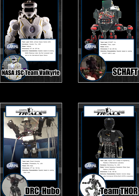 “We know the robots are slow and unsteady at this point—they’re much like a one-year-old human in terms of locomotion and grasping abilities and much farther behind that in brainpower,” said Gill Pratt, DARPA program manager. “The robots are taking ‘baby steps’ this year, but their performance will establish a reference point for what we can expect from the teams that return next year for the DRC Finals. We want that event to be much more difficult and force the robots to demonstrate useful capabilities in realistic disaster scenarios.”