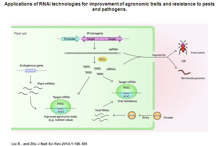 “As genomic resources for major crops and pests and pathogens are accumulated at a fast pace, additional target genes will be exploited for crop improvement,” predict Renyi Liu and Jiankang Zhu. “RNAi-based technologies also have the potential to play a major role in achieving other goals for crop improvement such as increased yield and enhanced resistance to abiotic stresses once the relevant pathways are better understood.”