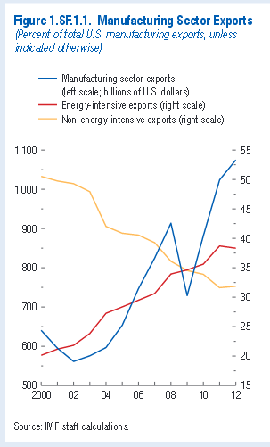 Cheap natural gas has delivered a significant boost to US manufacturing exports, the International Monetary Fund has found. Advances in shale rock drilling have led to a sharp rebound in US gas production, driving prices in the US to a steep discount to markets in Europe and Asia. US gas sells for $4 per million British thermal units, compared with $10 in Europe and close to $18 in Asia.