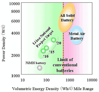 Winterkorn sees increasing the specific energy of lithium-ion cells to as much as 380 Wh/l will reduce driving range drawbacks. Lithium ion with a higher nickel content will get to even high energy density.