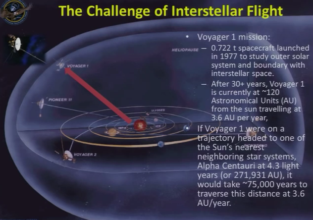 NASA Ames Research Director’s Colloquium, August 12, 2014. Human space exploration is currently still in Low Earth Orbit. But what would it eventually take for humans to explore the outer solar system? If the ultimate objective is the stars, then what might that look like? How hard is interstellar flight?