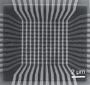 This circuit can learn to recognize simple black-and-white patterns, thanks to devices called memristors located at each place the wires cross.
