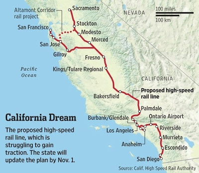 Any solution for speeding up California’s high speed rail would mean acquiring new overland rights or tunneling through hundreds of miles and taking out a lot of stops between San Francisco and Los Angeles to seek the straightest and flattest possible path. With a little Chinese-style land appropriation, you could build a train closer to 300 mph through most of the rout