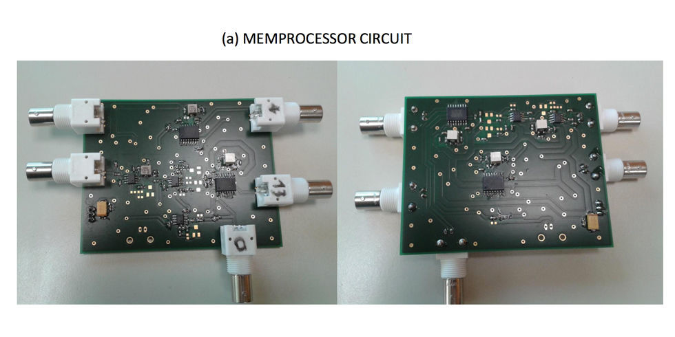 Researchers show an experimental demonstration of an actual memcomputing architecture that solves the NP-complete version of the subset sum problem in only one step and is composed of a number of memprocessors that scales linearly with the size of the problem. They have fabricated this architecture using standard microelectronic technology so that it can be easily realized in any laboratory setting. Although the particular machine presented here is eventually limited by noise—and will thus require error-correcting codes to scale to an arbitrary number of memprocessors—it represents the first proof of concept of a machine capable of working with the collective state of interacting memory cells, unlike the present-day single-state machines built using the von Neumann architecture.