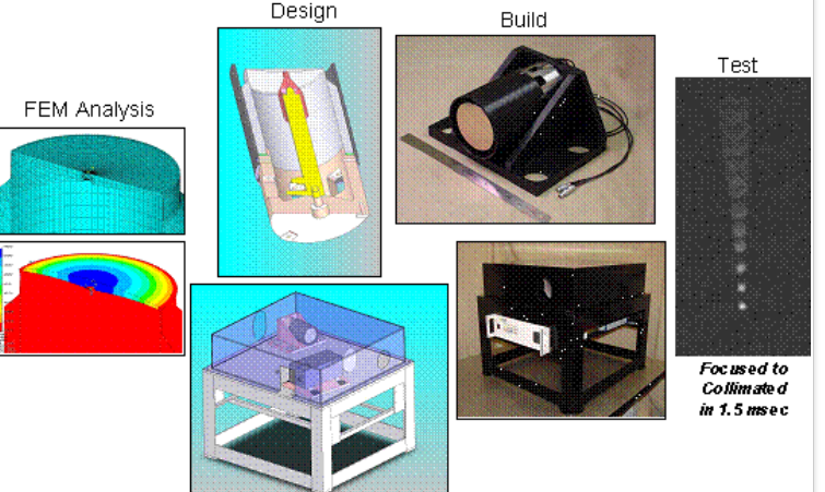 GEOST has an advanced laser beam control system. They change focus and tilt of a high-power laser beam over large ranges at very high rates. The fast focusing mirror requirements were beyond state of the art and we were able to model, develop, integrate, test, and deliver the system within six months.