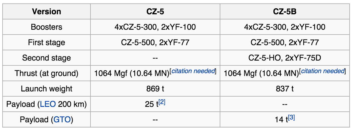 A Long March 5 will be a larger version of the Long March 6. Long March 5 (LM-5, CZ-5, or Changzheng 5) is a Chinese next-generation heavy lift launch system that is currently under development by China Academy of Launch Vehicle Technology (CALT). Currently, six CZ-5 vehicle configurations are planned for different missions, with a maximum payload capacity of 25,000 kg to LEO and 14,000 kg to GTO.