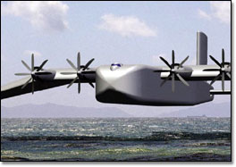 It was intended as a large-capacity transport craft for military or civilian use, it would have a wingspan of 500 feet (150 m), a cargo capacity of 1,400 tons (1,300 metric tonnes), and a range of about 10,000 nautical miles (18,000 km). Powered by four turboprop engines, its main mode would be to fly in ground effect 20–50 ft (6–15 m) over water, though it would also be capable of overland flight at an altitude as high as 20,000 ft (6,100 m) albeit with a decreased range of about 6,500 nautical miles (12,000 km).