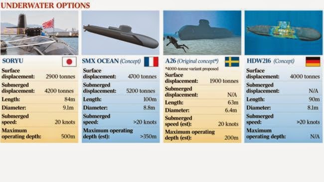 Long considered the frontrunner, Japan has been losing ground to Germany and its offer of the HDW-class 216 diesel-electric sub designed by ThyssenKrupp Marine Systems (TKMS). Unlike their Japanese competitors, the German company has already built over 160 submarines for 20 different international customers.
