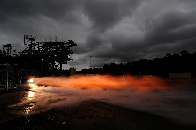 “In engineering lingo, this is called a breadboard engine,” explained Nick Case, the testing lead for the effort. “What matters is that the parts work the same way as they do in a conventional engine and perform under the extreme temperatures and pressures found inside a rocket engine. The turbopump got its “heartbeat” racing at more than 90,000 revolutions per minute (rpm) and the end result is the flame you see coming out of the thrust chamber to produce over 20,000 pounds of thrust, and an engine like this could produce enough power for an upper stage of a rocket or a Mars lander.”
