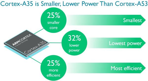 The ARM® Cortex®-A35 processor is ARM’s most power-efficient application processor capable of seamlessly supporting 32-bit and 64-bit code. The Cortex-A35 processor marks the beginning of a new family of ultra-high efficiency application processors from ARM.