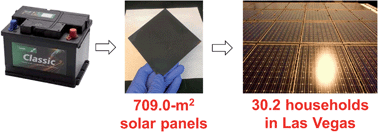A simple economic analysis shows that the proposed battery-to-solar-cell procedure could have a substantial impact. Assuming that the perovskite thin film is just half a micrometer thick, the researchers calculate that a single lead-acid car battery could supply enough lead for the fabrication of more than 700 square meters of perovskite solar cells. If the cells achieve 15 percent efficiency (a conservative assumption today), those solar cells would together provide enough electricity to power about 14 households in Cambridge, Massachusetts, or about 30 households in sunny Las Vegas, Nevada. Powering the whole United States would take about 12.2 million recycled car batteries, fabricated into 8,634 square kilometers of perovskite solar panels operating under conditions similar to those in Nevada.