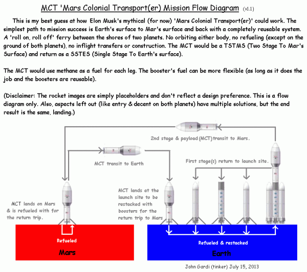 All sources have indicated that the MCT launch vehicle is intended to be reusable—making use of the SpaceX reusable technology that is currently being developed for Falcon 9 and Falcon Heavy.