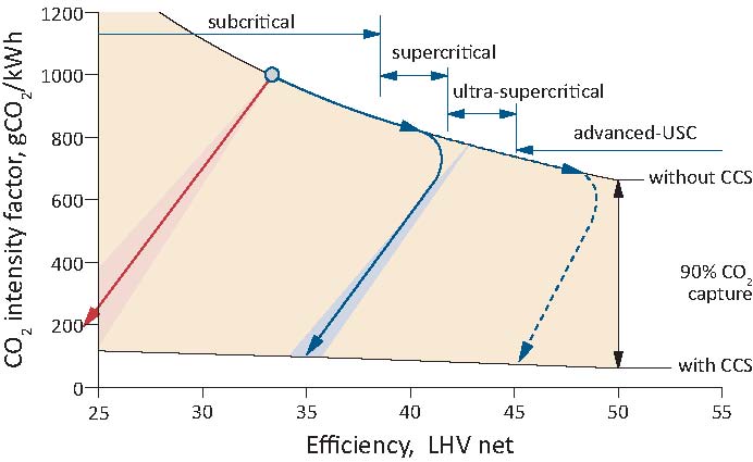 Upgrading existing plants and building new high-efficiency, low-emissions (HELE) coal-fired power plants addresses climate change concerns in two important ways. In the near term, emissions can be reduced by upgrading existing plants or building new HELE plants. Such plants emit almost 20% less CO2 than a subcritical unit operating at a similar load. Over the longer term, HELE plants can further facilitate emission reductions because coal-fired plants operating at the highest efficiencies are also the most appropriate option for CCS retrofit.