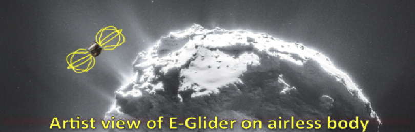 The environment near the surface of airless bodies (asteroids, comets, Moon) is electrically charged due to Sun’s photoelectric bombardment. Charged dust is ever present, even at high altitudes (dust fountains), following the Sun’s illumination. We envisage the global scale exploration of airless bodies by a gliding vehicle that experiences its own electrostatic lift and drag by its interaction with the naturally charged particle environment near the surface. This Electrostatic Glider (E-Glider) lifts off by extending thin, charged, appendages, which are also articulated to direct the levitation force in the most convenient direction for propulsion and maneuvering. It thus carries out its science mission by circumnavigating the small body, and it lands, wherever it is most convenient, by retracting the appendages or by thruster/anchor.