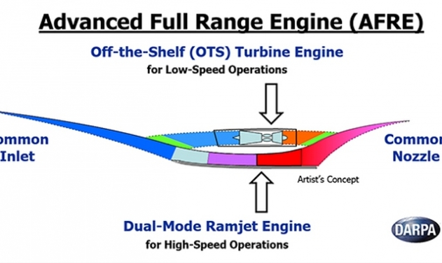 AFRE aims to explore a turbine-based combined cycle (TBCC) engine concept, which would use a turbine engine for low-speed operations and a dual-mode ramjet—which would work efficiently whether the air flowing through it is subsonic (as in a ramjet) or supersonic (as in a scramjet)—for high-speed operations. The two components of the hybrid engine would share a common forward-facing air intake and rear-facing exhaust nozzle to release thrust.