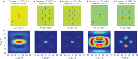 In large part, the energy from the recaptured lateral radiation is re-emitted in the direction perpendicular to the array. So the beam emitted by the array is much tighter than that emitted by other experimental chip-scale lasers. And a tight beam is essential for most envisioned applications of terahertz radiation.
