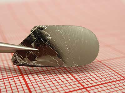 A crystal sample of one of the iron-based unconventional superconductors studied by Ames Laboratory scientists. Their systematic investigation of this class of superconductors may lead to the creation of new materials with unique superconducting properties.