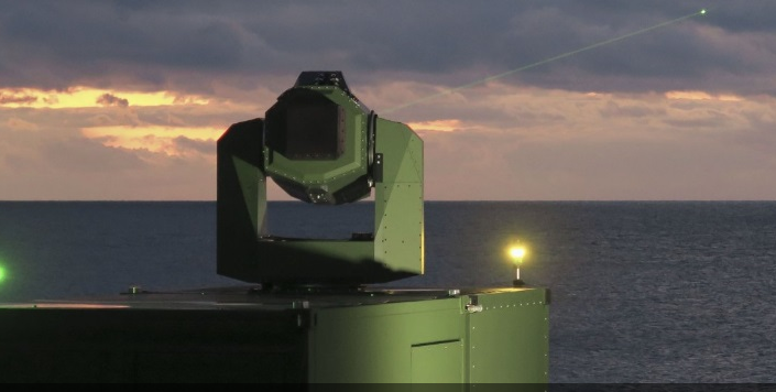 MBDA Germany’s new laser weapon demonstrator. The green ‘beam’ is the illumination laser, not the high-energy laser effector. Source: MBDA