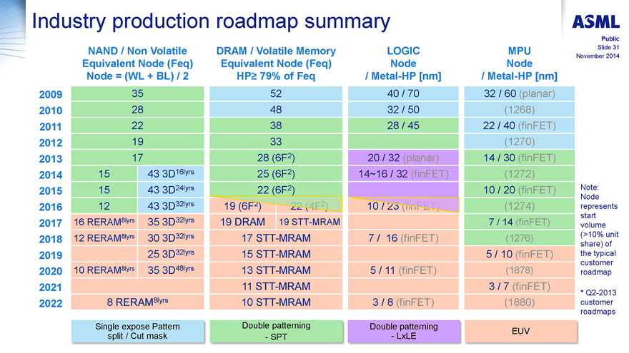 TSMC is roughly tracking to the industry roadmap from 2014.