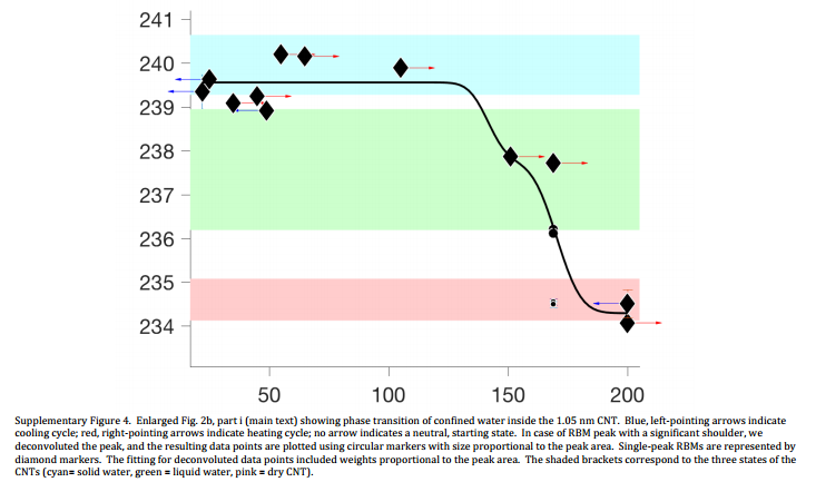 Evidence of filling and phase transition of water inside carbon nanotubes (CNTs).