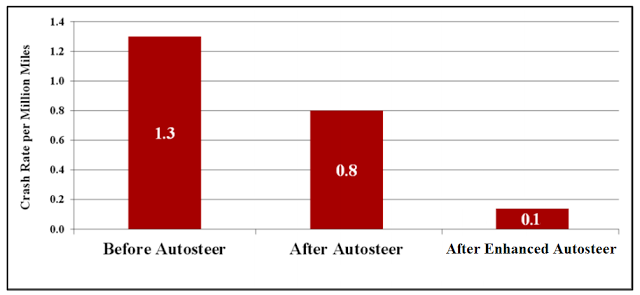That’s 1.3 crash per million miles before Autopilot’s Autosteer feature down to 0.8 crash per million miles after Autosteer – a 40% reduction in crash rate verified by NHTSA – and now they are aiming for 0.1 crash per million miles after the introduction of what the company has been calling ‘Enhanced Autosteer’ with Tesla’s second generation Autopilot hardware.