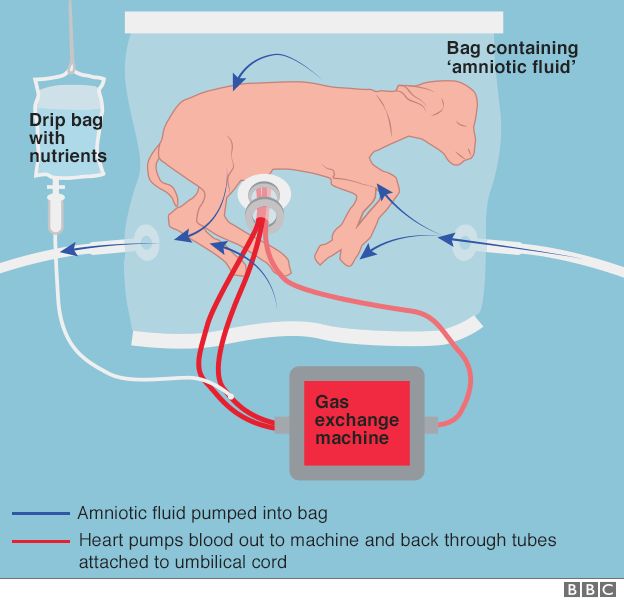 Currently, very premature infants, born at around 23 weeks of gestation, are placed in incubators and put on ventilators to help them breathe, but this can damage their lung development. In babies born preterm, the chance of survival at less than 23 weeks is close to zero, while at 23 weeks it is 15%, at 24 weeks 55% and at 25 weeks about 80%.