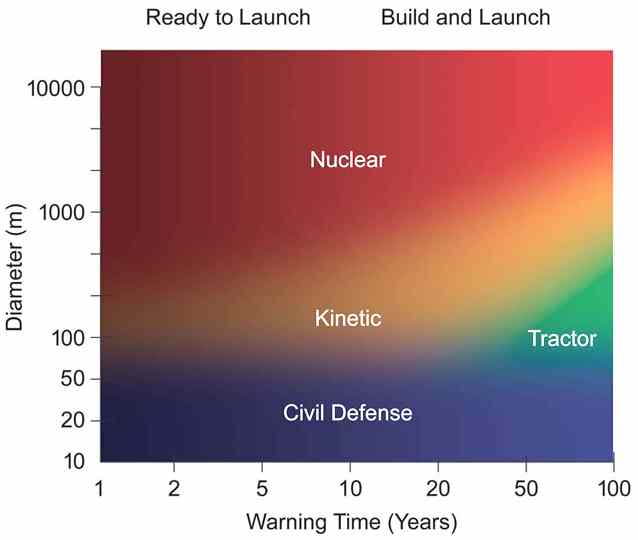 * If an asteroid is bigger than 500 meters and it will hit in less than five years, then the best option is to try to hit it with a nuclear device.