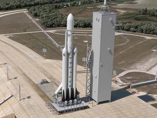 SpaceX’s first Falcon Heavy rocket will have a hold-down firing of its 27 Merlin main engines in December but the first test launch will not be until January, 2018.