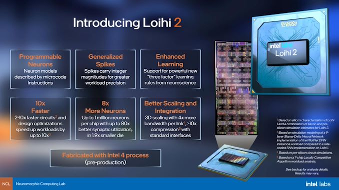 Advances in Loihi 2 allow the architecture to support new classes of neuro-inspired algorithms and applications, while providing up to 10 times faster processing1, up to 15 times greater resource density with up to 1 million neurons per chip, and improved energy efficiency. Benefitting from a close collaboration with Intel’s Technology Development Group, Loihi 2 has been fabricated with a pre-production version of the Intel 4 process, which underscores the health and progress of Intel 4. The use of extreme ultraviolet (EUV) lithography in Intel 4 has simplified the layout design rules compared to past process technologies. This has made it possible to rapidly develop Loihi 2.